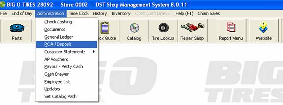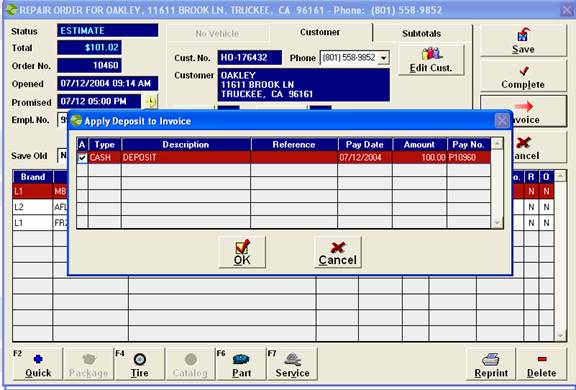 The deposit screen will display when you invoice a ticket.