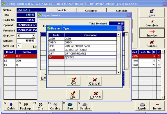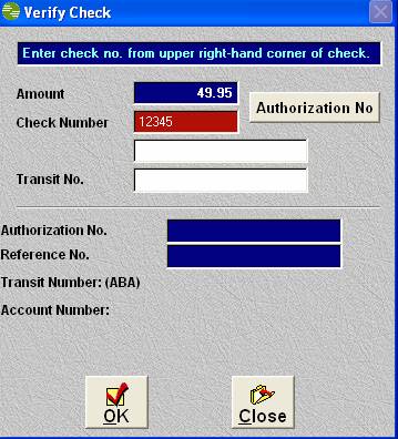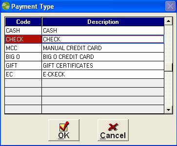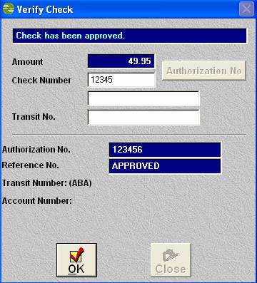 Some machines will accept the check, void the check and you hand the check back to the customer. If that is the case select Payment Type E-Check. Click OK